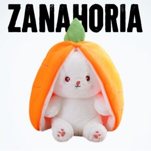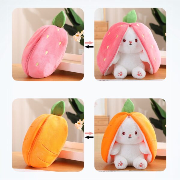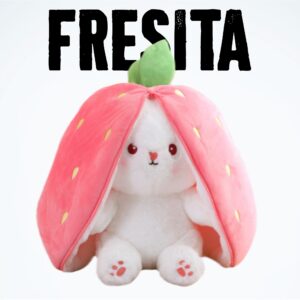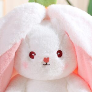 Peluche de conejito con orejas reversibles que se cierran para contenerlo en una fruta o un vegetal, un conejito schrödinger kawaii.