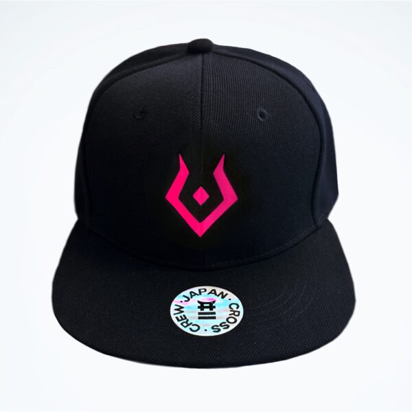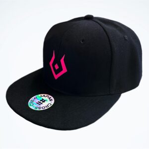 Gorra negra de visera plana ajustable con estampado que reacciona con la luz UV, para maldecir con estilo.
