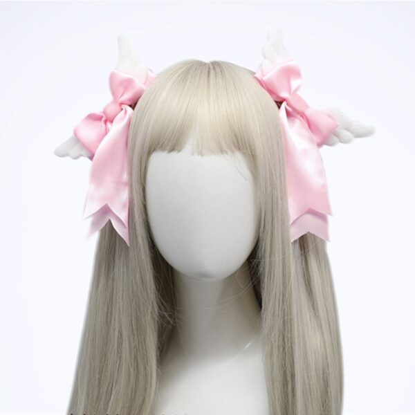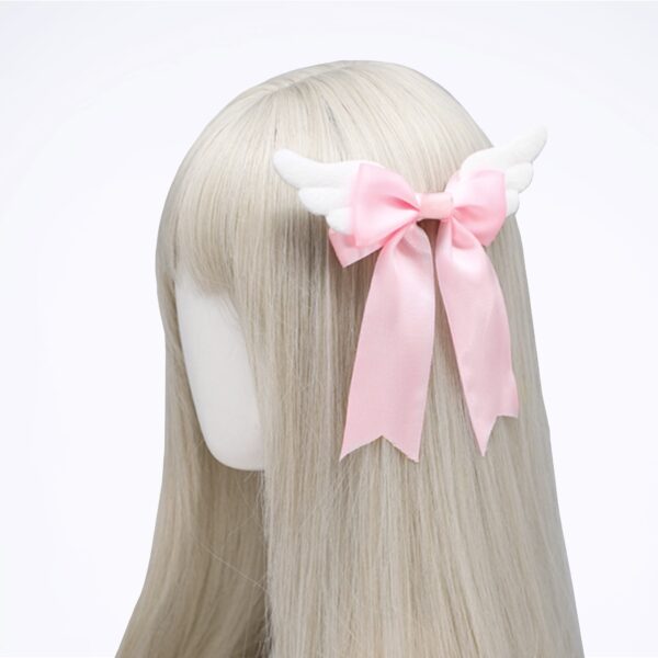 Lacito rosa de pinza estilo loli con alitas kawaii.