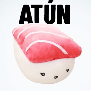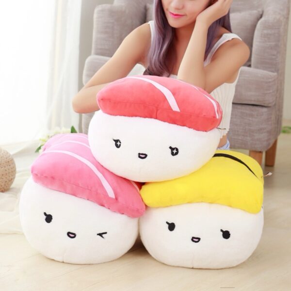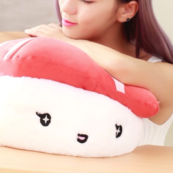 Peluche cojín de sushi nigiri, con una gran bola de algodón y una bonita rebanada de peluche.